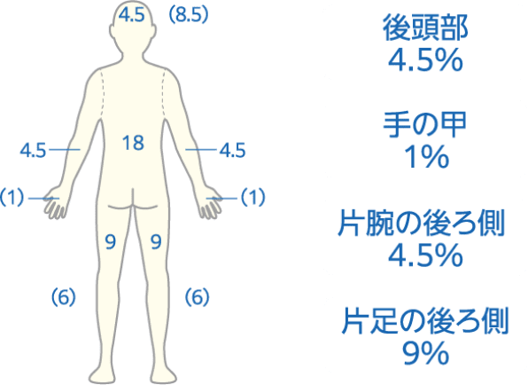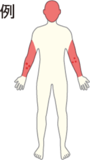 アトピー性皮膚炎の重症度は、頭部(顔・首を含む)、体幹、腕、脚の4つの部位に分けて、湿疹、はれ、ひっかき傷、皮膚のごわごわ感の程度や面積で評価されます。