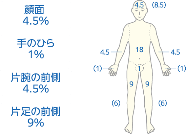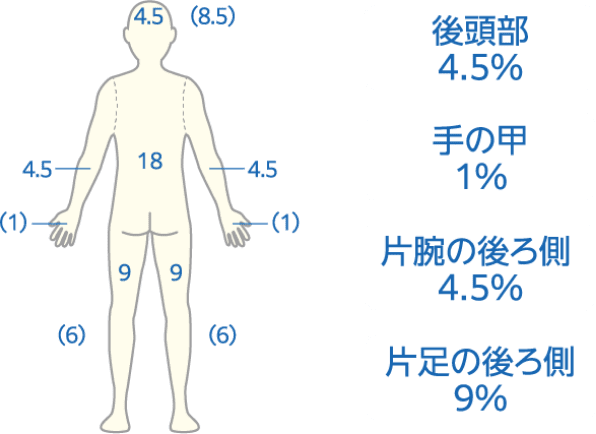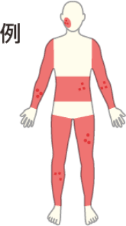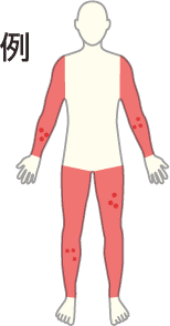 アトピー性皮膚炎の重症度は、頭部(顔・首を含む)、体幹、腕、脚の4つの部位に分けて、湿疹、はれ、ひっかき傷、皮膚のごわごわ感の程度や面積で評価されます。